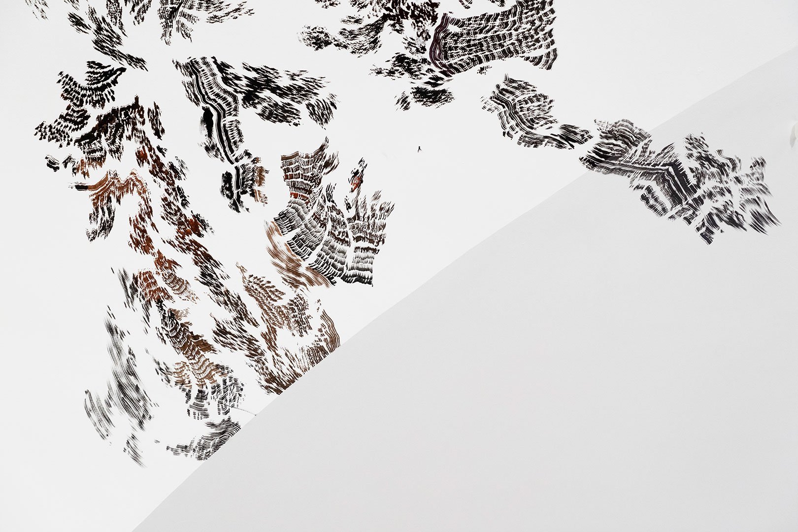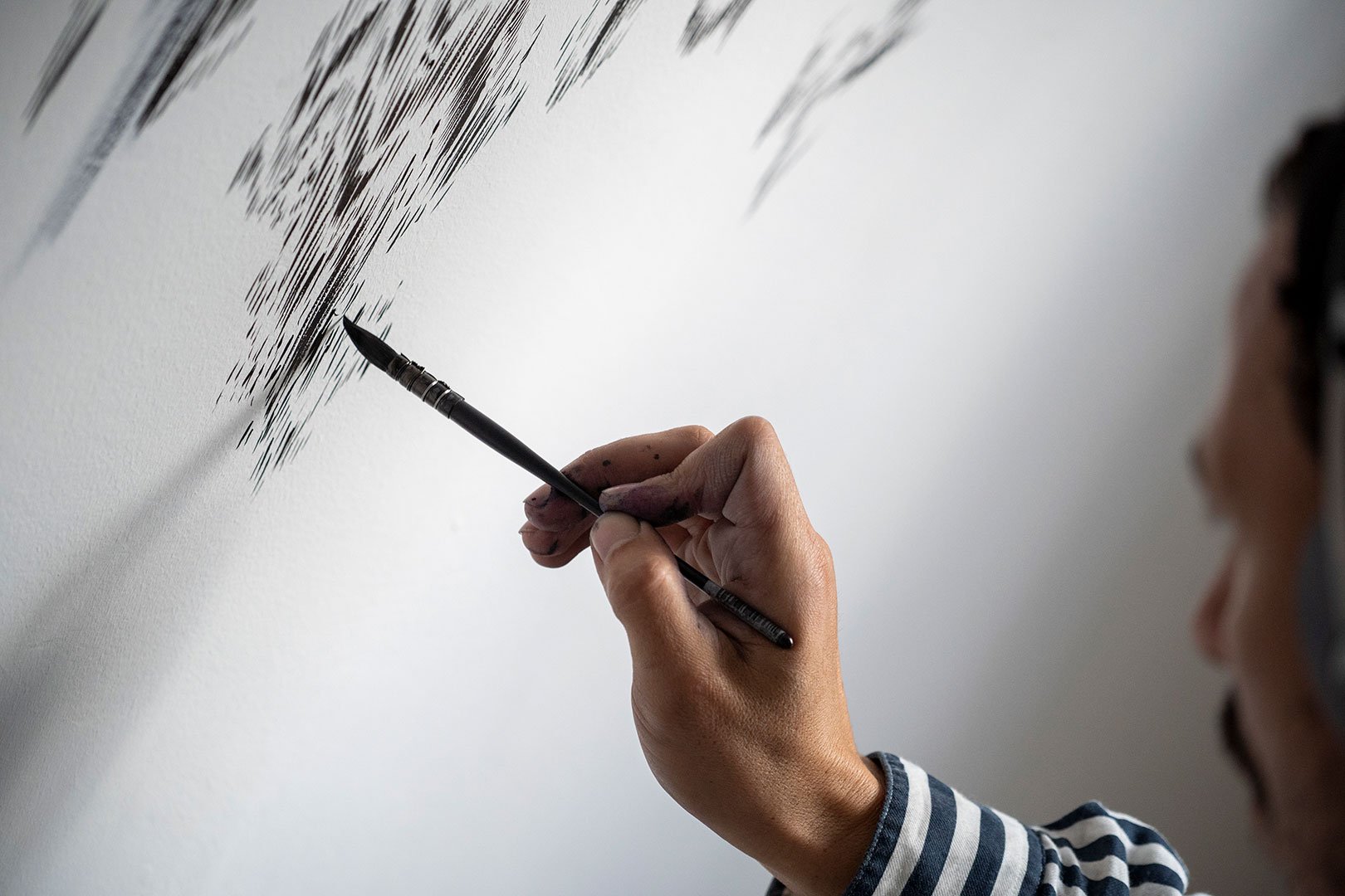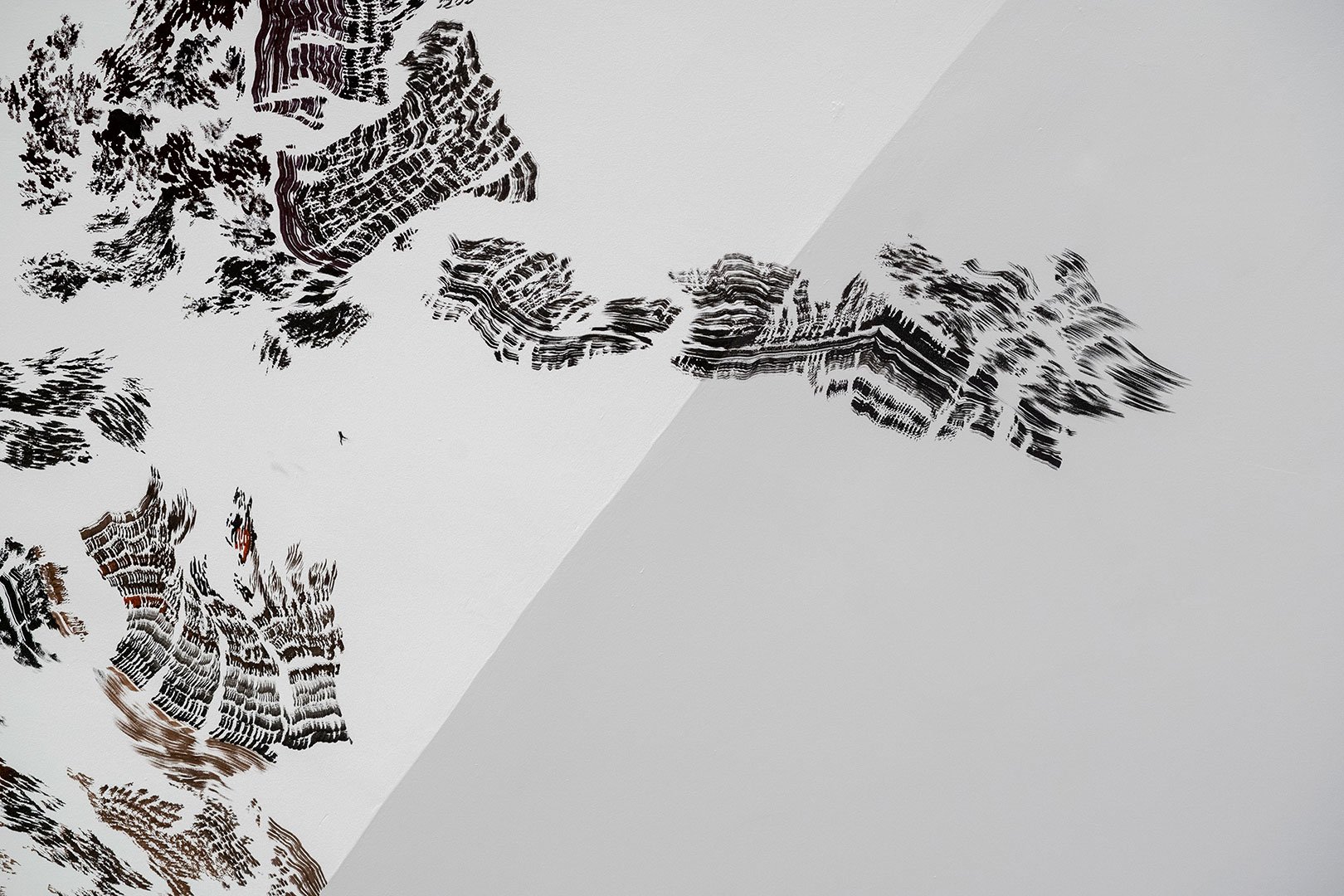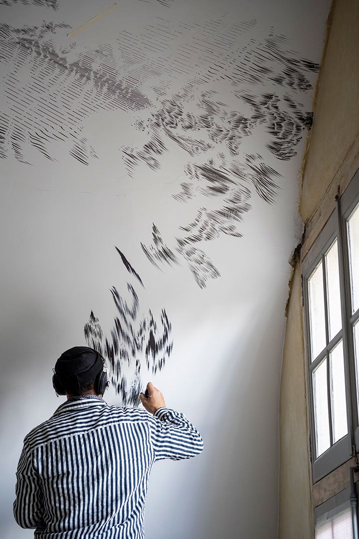 Abdelkader Benchamma a réalisé au plafond de l’accueil de l’hôtel une immense fresque à l’encre de chine évoquant l’Alchimie, variation contemporaine des techniques du Grand Siècle.